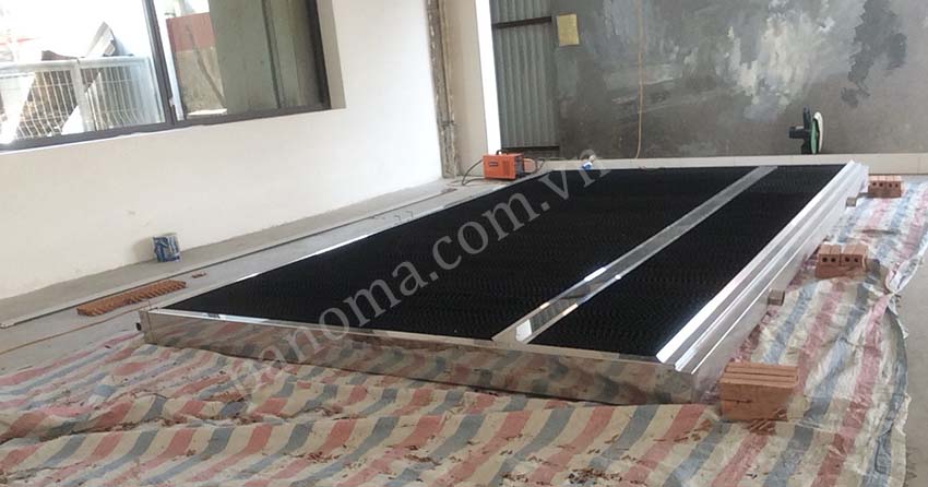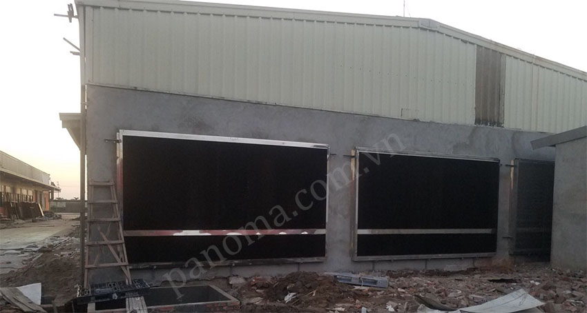Hệ thống khung dàn làm mát đã được hoàn thiện (nhìn từ phía ngoài xưởng)