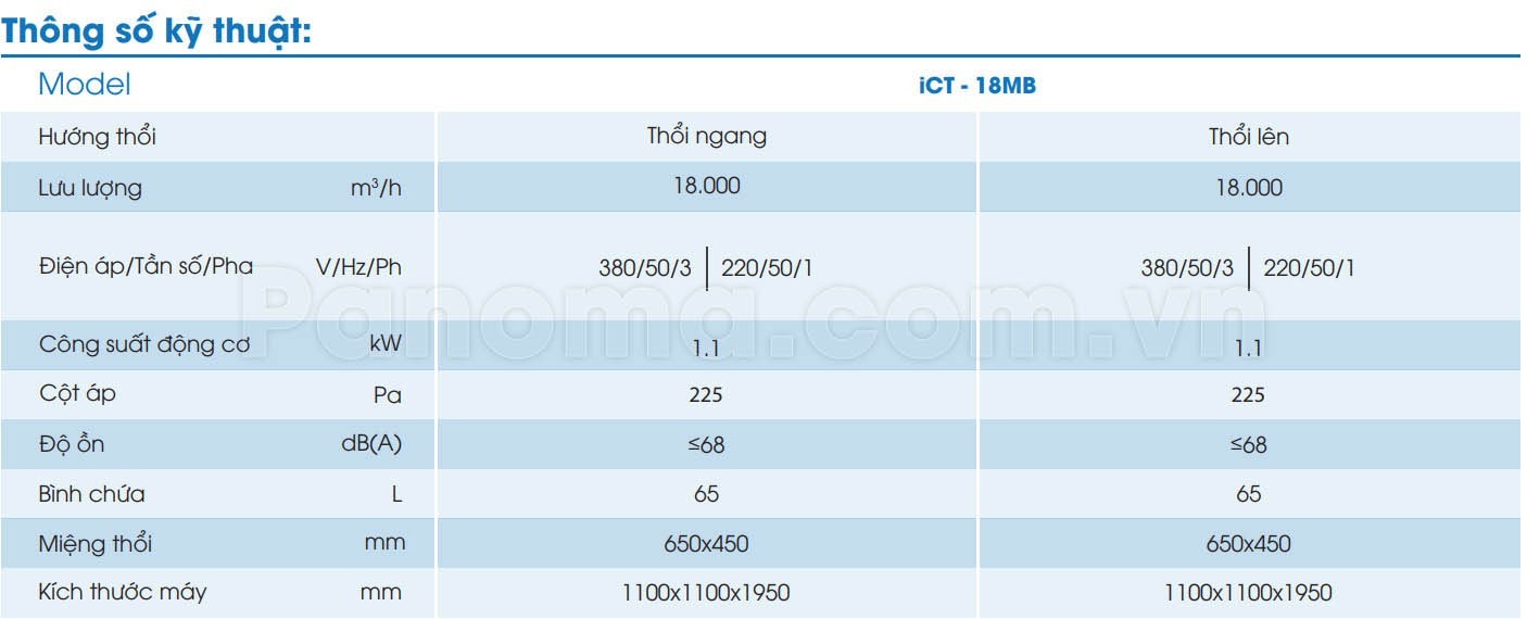 Thông số kỹ thuật máy làm mát iCT - 18MB