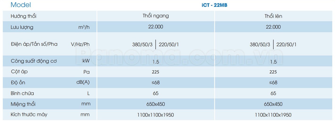Thông số kỹ thuật máy làm mát iCT - 22MB