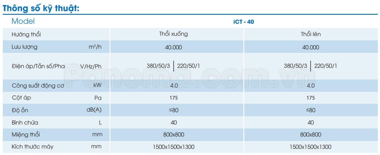 Máy làm mát công nghiệp iCT-40 với những đặc điểm nổi bật sau: