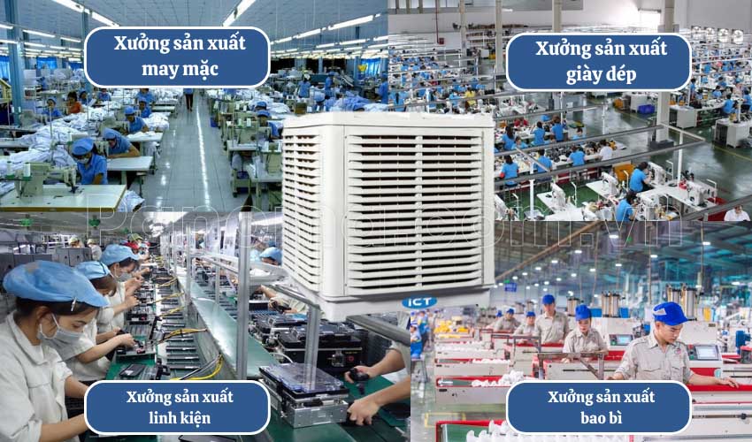 Máy làm mát iCT - 40 được ứng dụng rộng rãi trong các môi trường có không gian lớn, cần làm mát diện rộng: